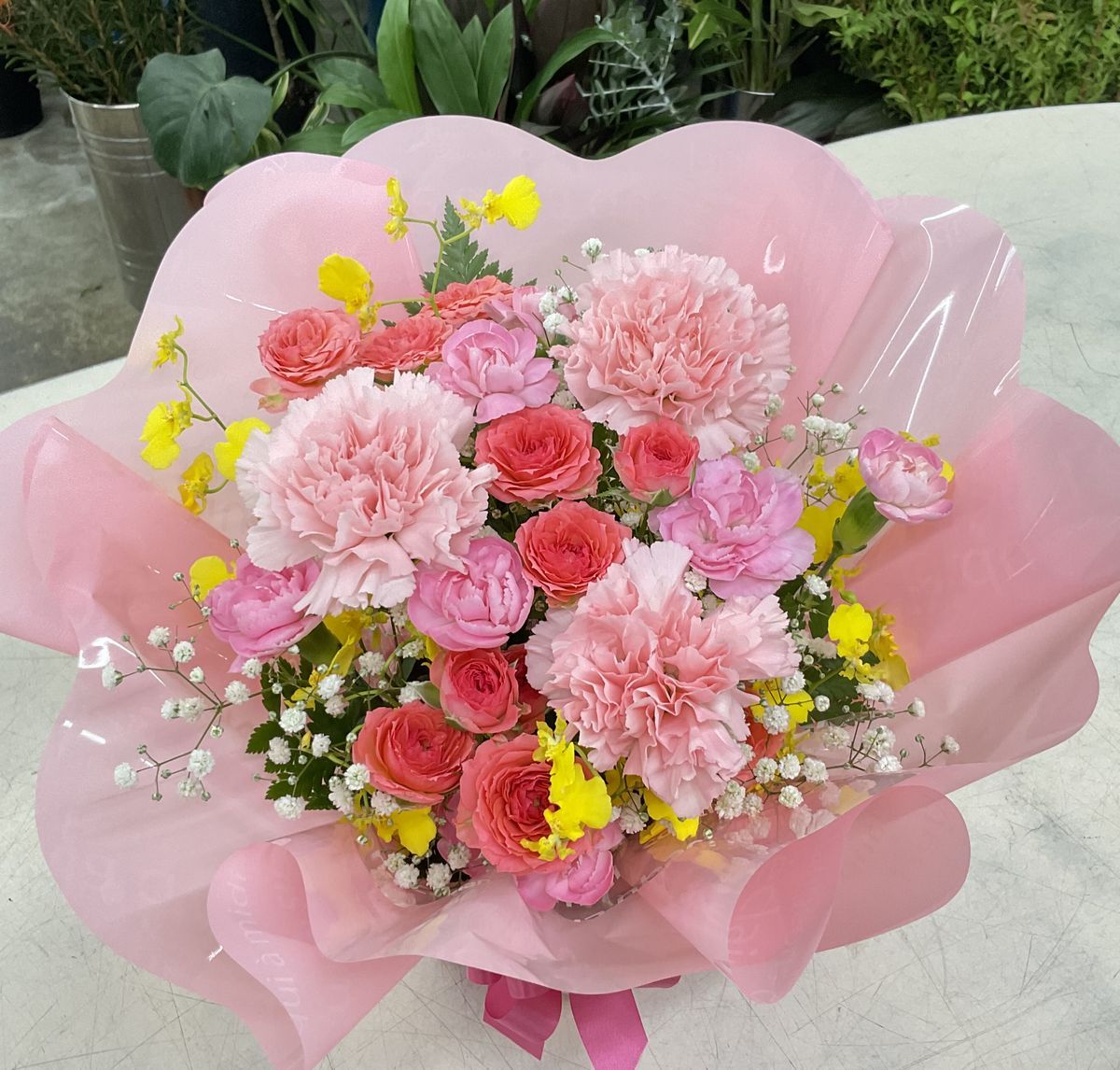 カーネーション、愛媛県産spバラ「ローラ」、オンシジウム、カスミソウほか