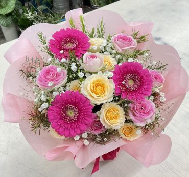 ガーベラ、愛媛県産spバラ「ジェラート」「サラ」、かすみ草ほか