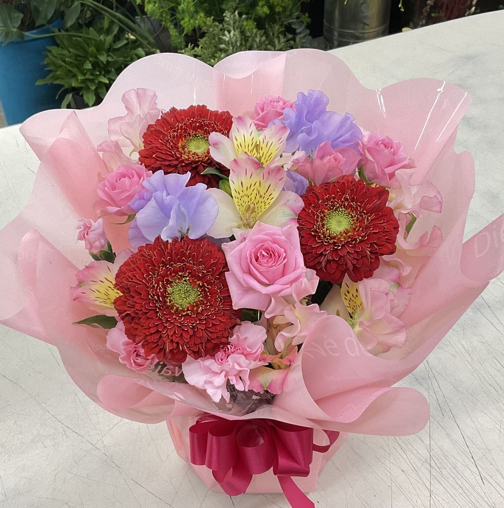 ガーベラ、愛媛県産spバラ「ストロベリーワルツ」、アルストロメリア、スイートピー